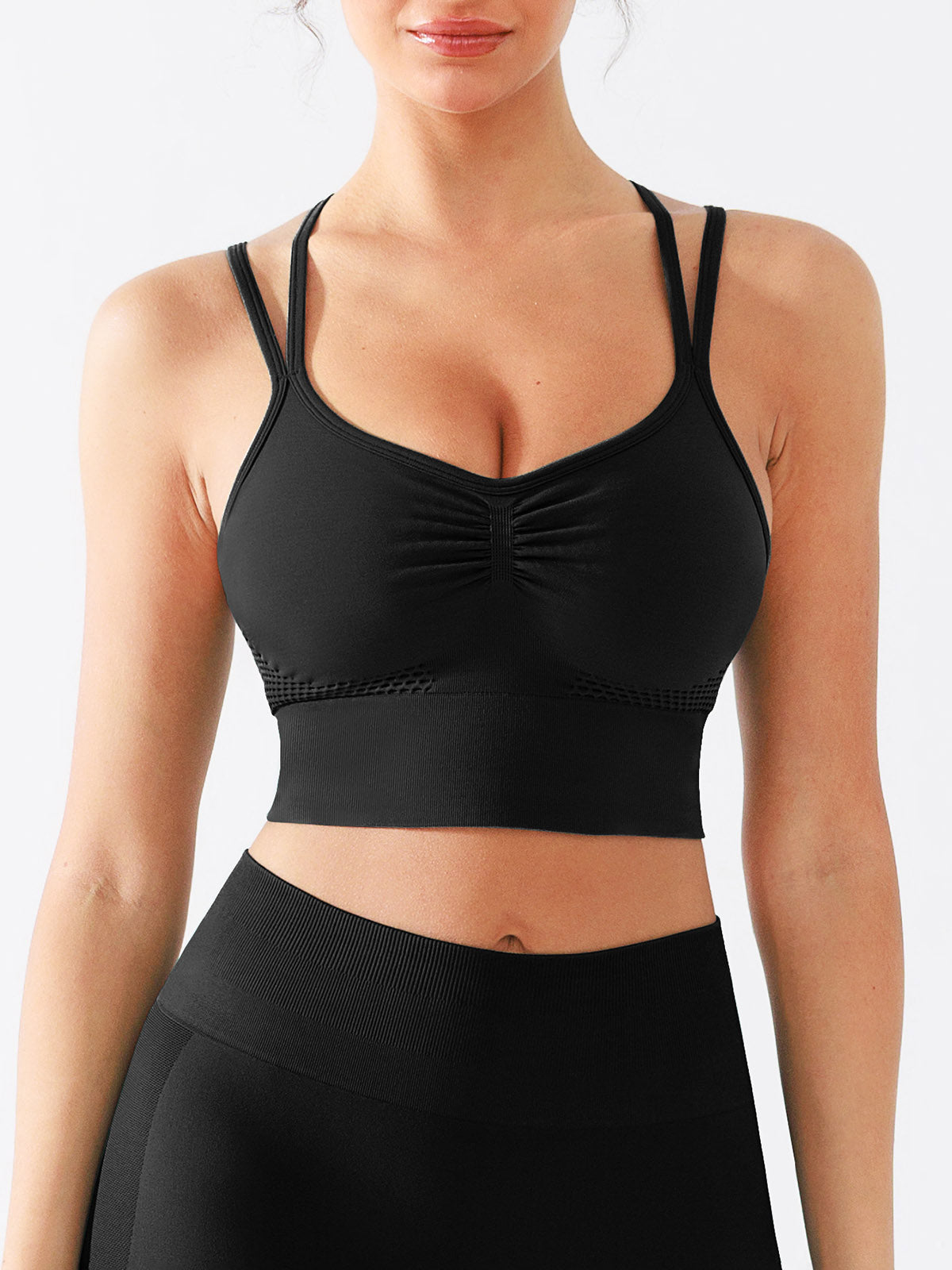 Perfect for yoga, pilates, stretching, or casual layering, this spaghetti racerback bra blends comfort, confidence, and effortless style your go-to essential from studio to street.