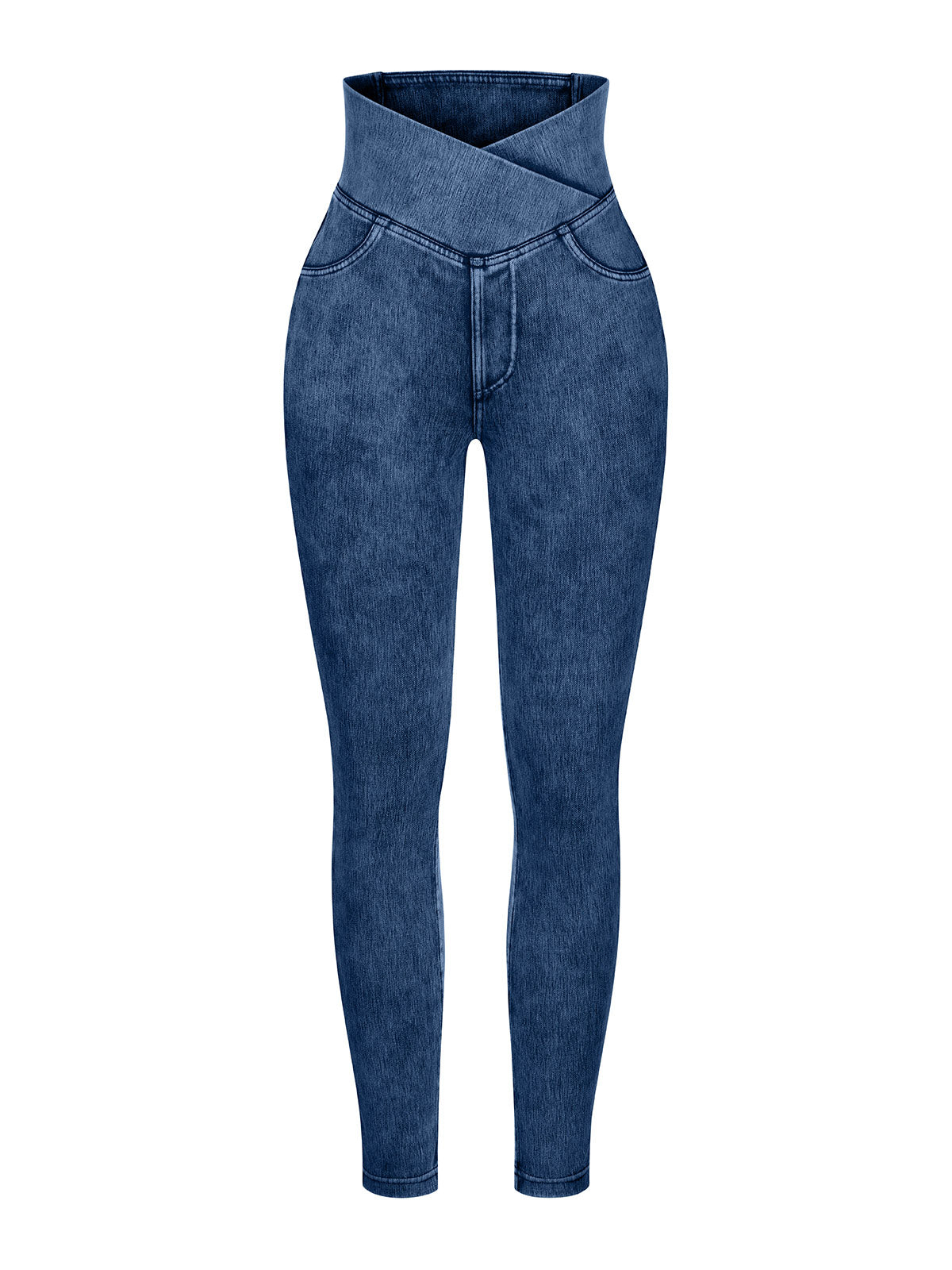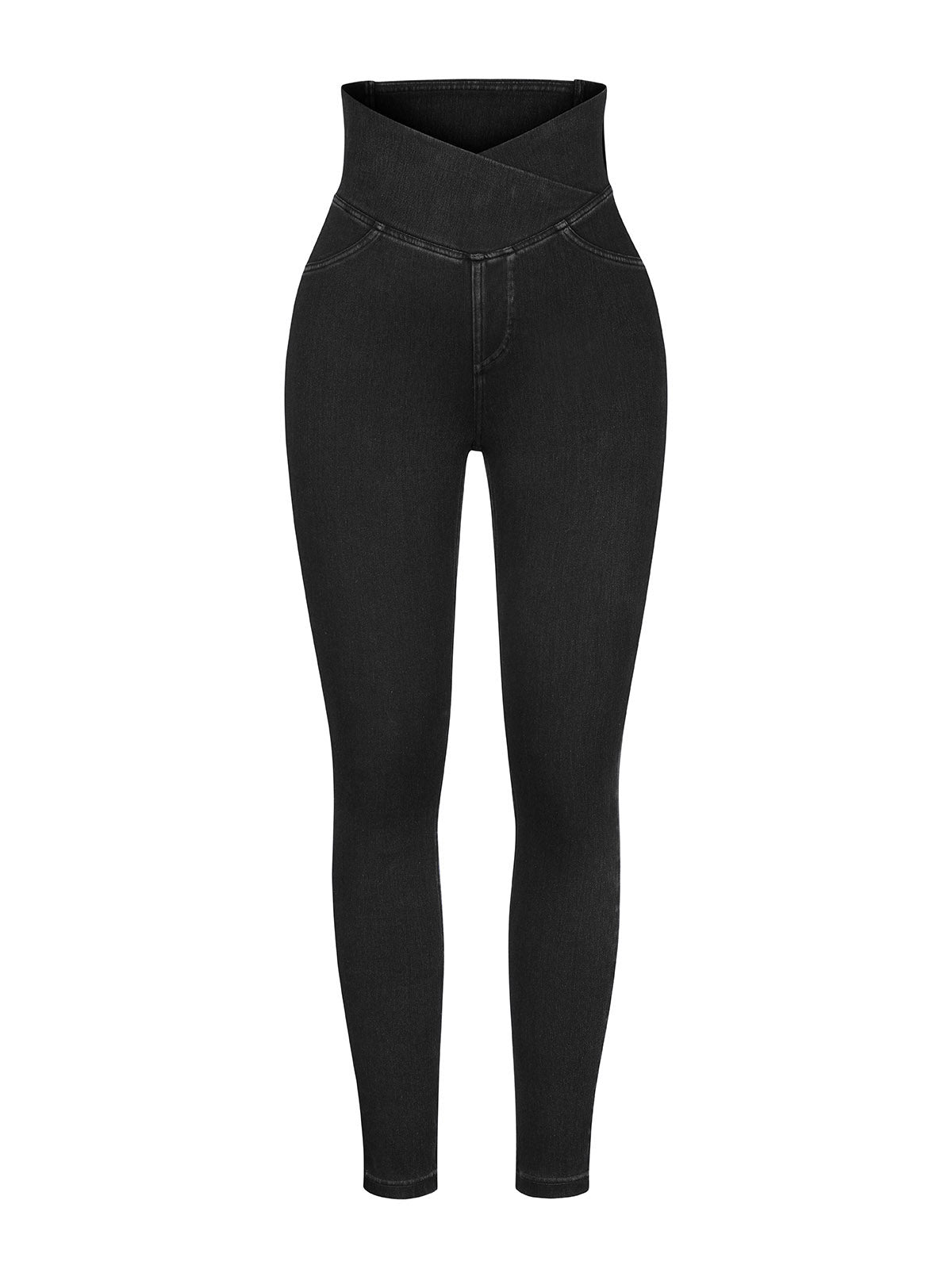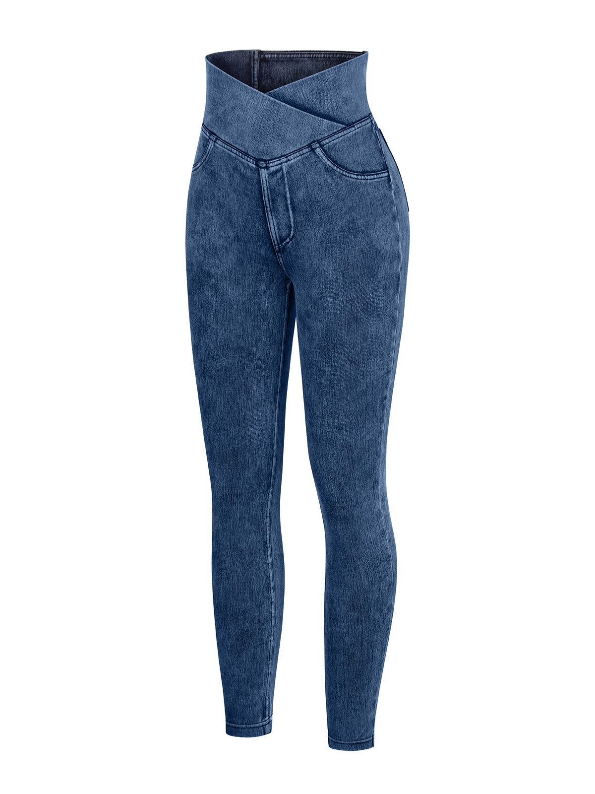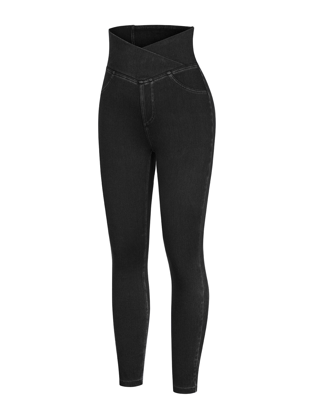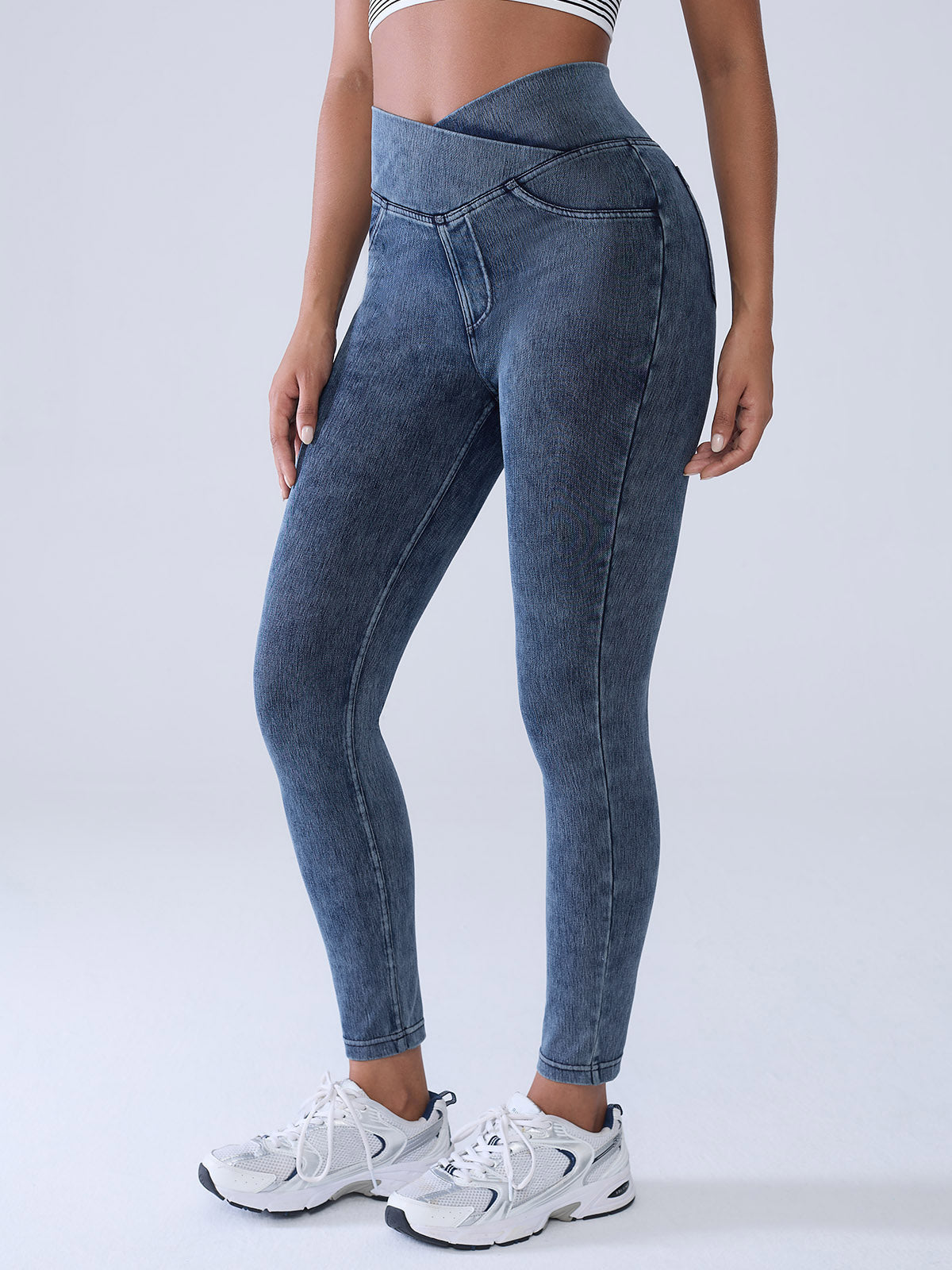 Vractivewholesale Crossover Denim Side Pockets Sculpting Leggings